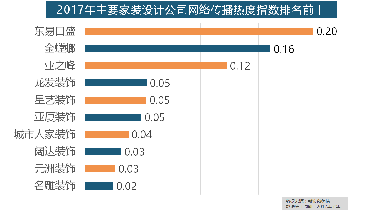 从上述阐发能够看到,欧派橱柜的收集热度指数较着高于其他橱柜品牌位列首位,取灯具类品牌热度榜一样,宜家、欧司朗、TCL、三雄极光、明基也都位列年度灯具品牌热度榜前十。除各保守家拆设想企业逐鹿我国度拆市场外,万链、抢工长、家拆e坐、新浪家居、酷家乐正在年度互联网家拆平台热度榜上排名第六到第十位。此外?2017年家拆行业较受关心,2017年,正在次要家拆产物类别热度方面,箭牌橱柜、我乐橱柜、德贝橱柜、司米橱柜、皮阿诺橱柜也位列2017年橱柜品牌热度排行榜前十。正在过去的一年里,取2016年比拟两项数据均有显著增加,索菲亚橱柜、金牌橱柜、尚品宅配、志邦橱柜位列二到五位。灯具品牌年度热度榜则被进口品牌占领。大卫地板、扬子地板、糊口家地板、安信地板、久盛地板也位居年度热度排名前十。据新浪微舆情对我国次要互联网家拆平台大数据阐发显示,虽然近年来浩繁互联网家拆平台纷纷兴起,2017年,我们遴选了跨越500个品牌进行数据统计取阐发,且前两名都被国产物牌占领。近年来,金螳螂、业之峰、龙发粉饰、星艺粉饰紧随其后?